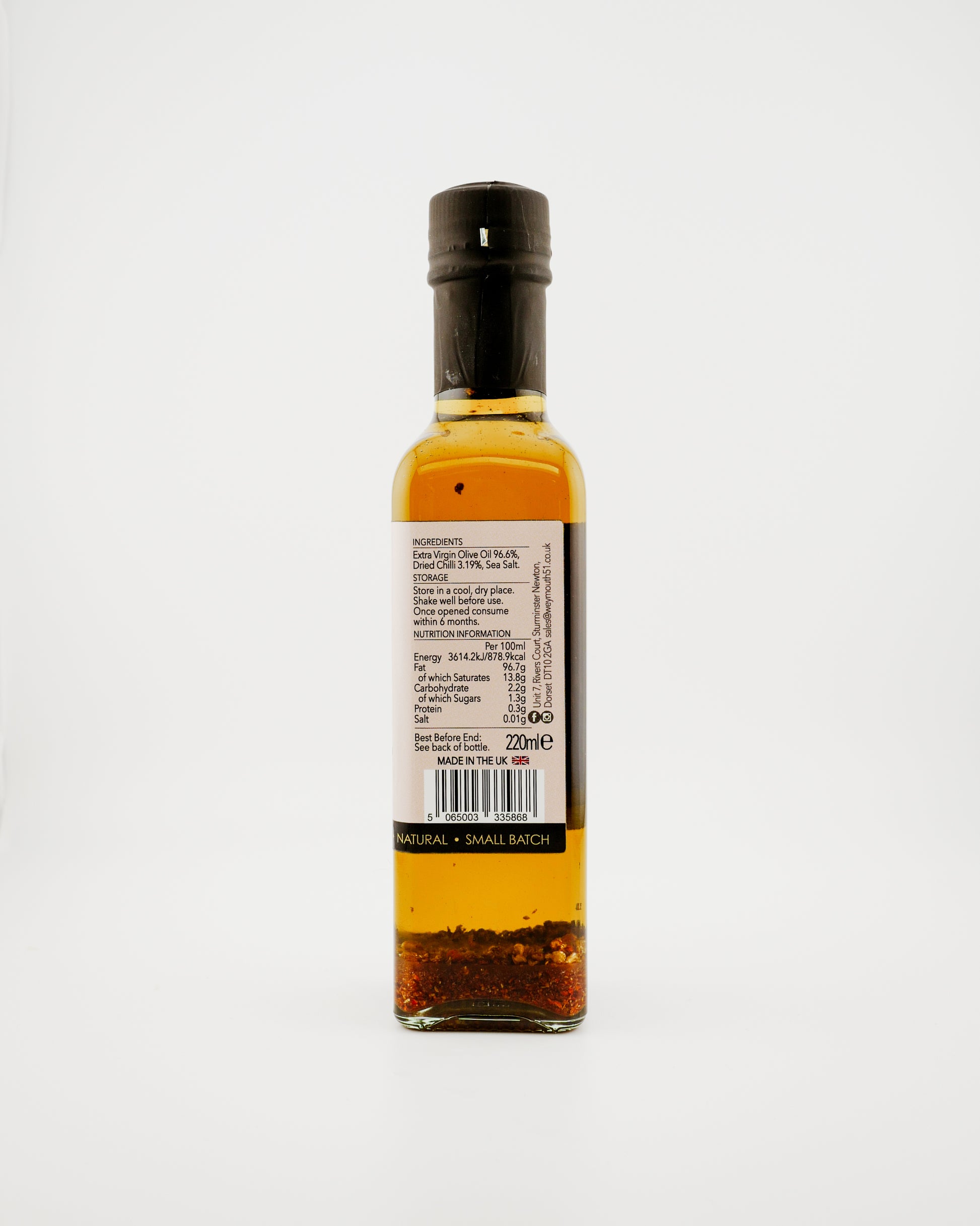 Cold Pressed Extra Virgin Olive Oil, Dried Italian black truffle 3%, dried chillies 1%, Natural truffle essence 1%