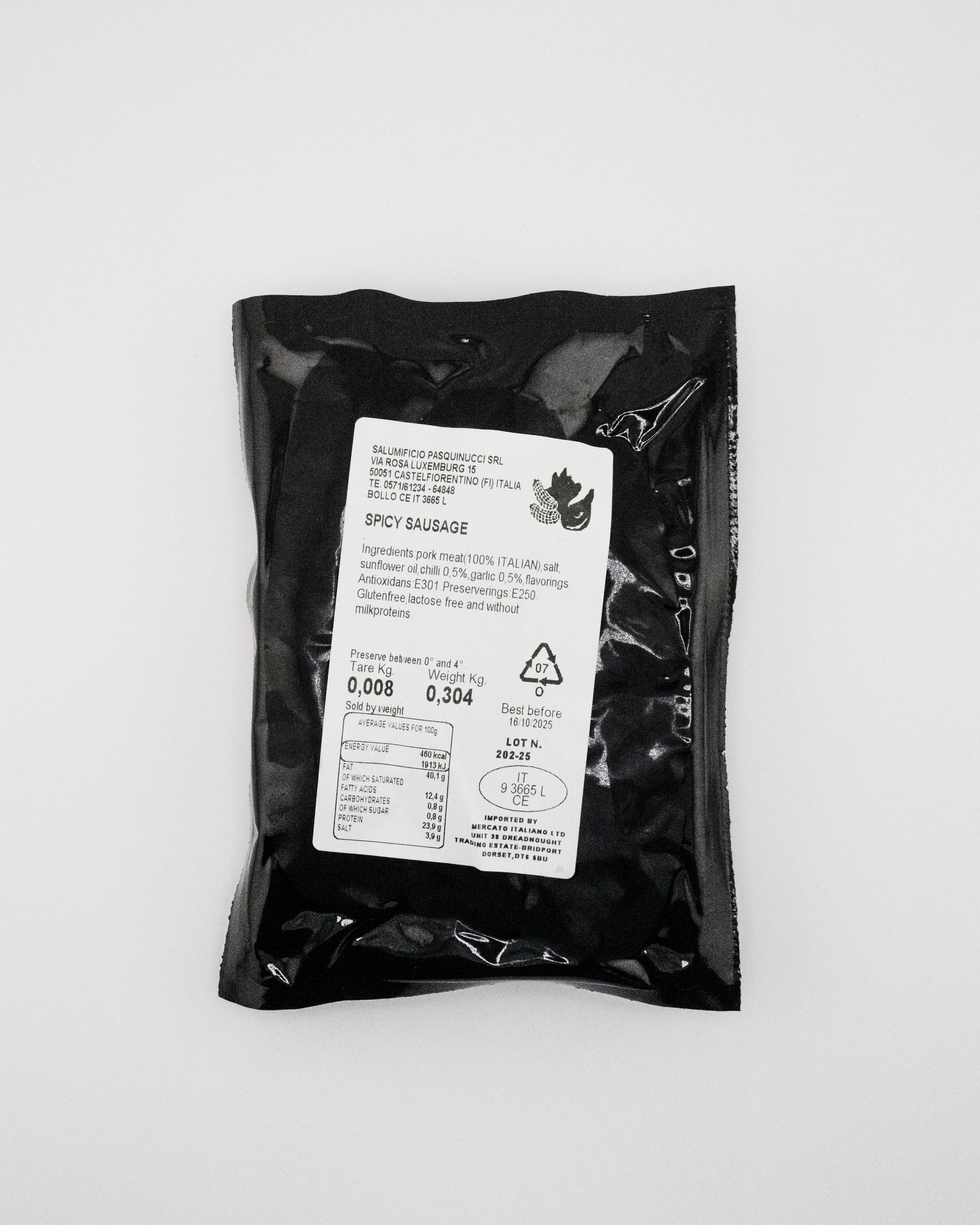 Succulent Tuscan sausage with fennel seeds. The classic. Cook whole, grill, or break it down into a rich ragù. Made with 100% Italian pork, no gluten, no lactose. Just honest, traditional flavour.