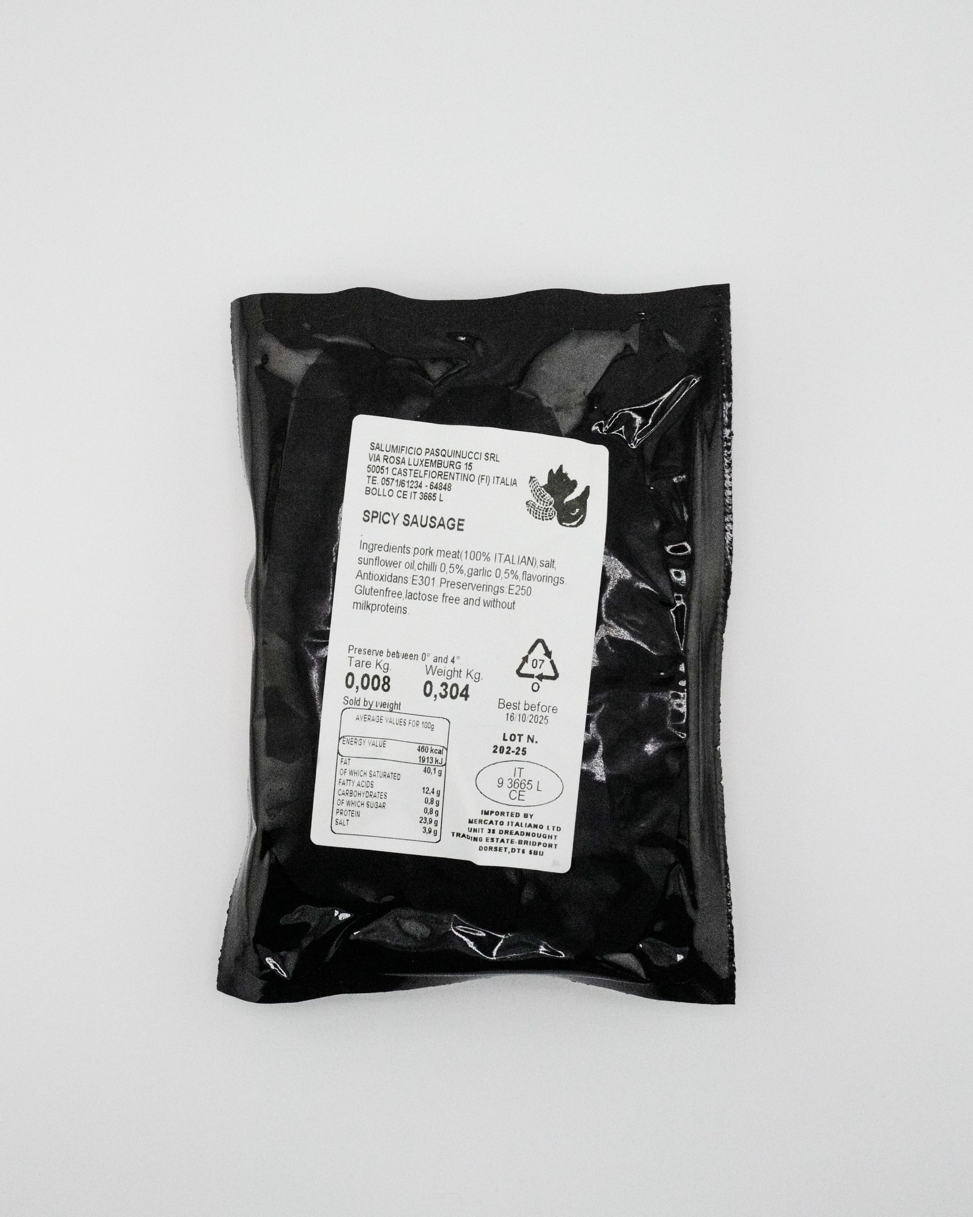 Succulent Tuscan sausage with chilli, slightly piquant. Cook whole, grill, or break it down into a rich ragù. Made with 100% Italian pork, no gluten, no lactose. Just honest, traditional flavour.